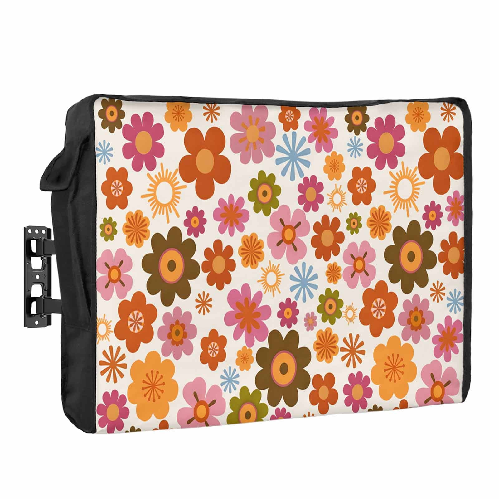 Colorful Flower Waterproof Outdoor TV Cover, Boho Style Retro Pink Red ...