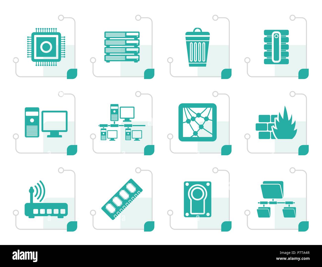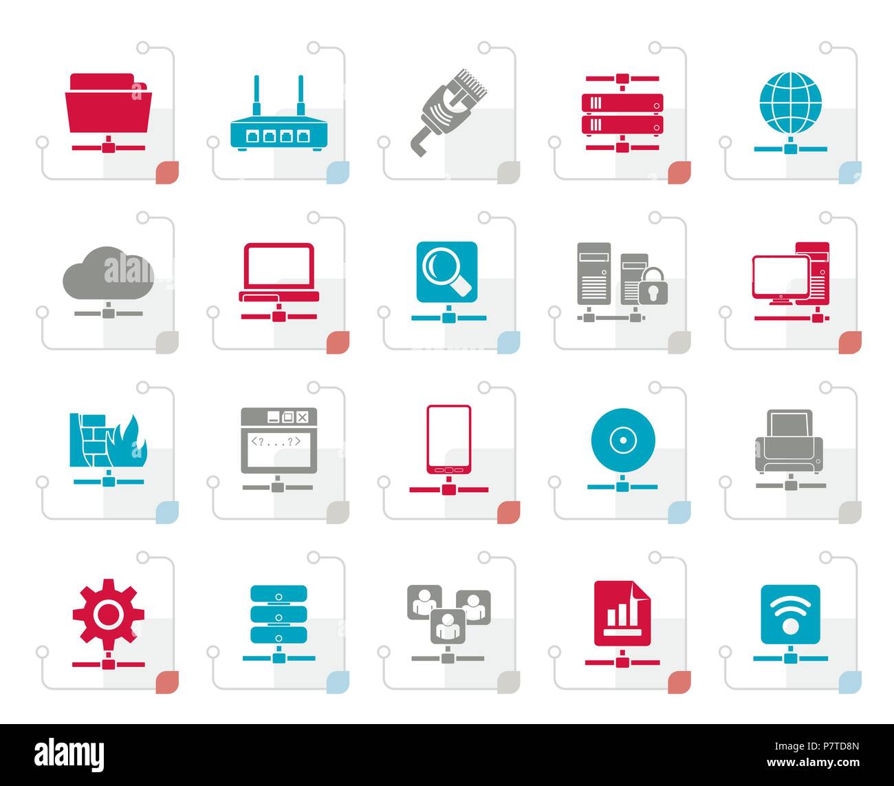 Stylized Computer Network and internet icons - vector icon set Stock ...