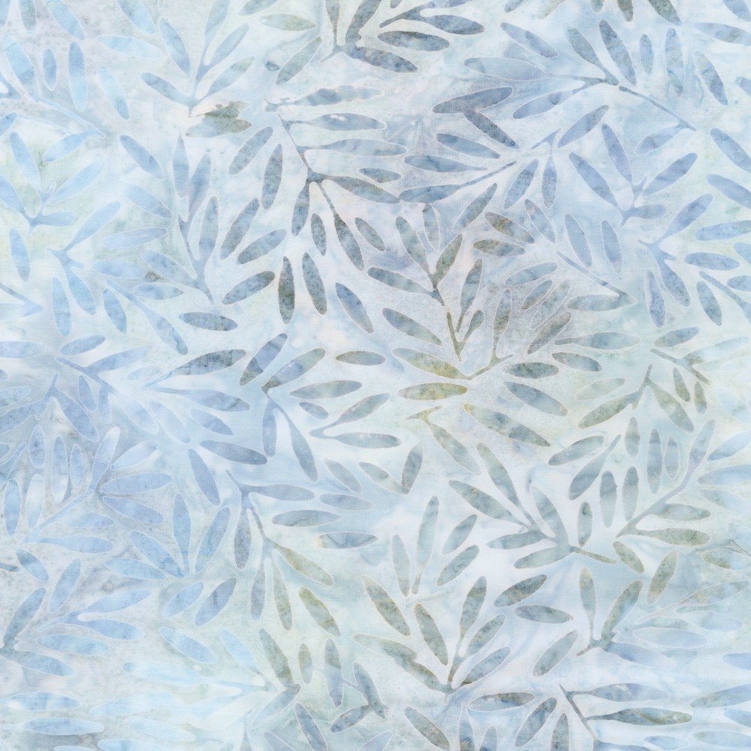 Morning Mist Artisan Batik Fabric, Color Coastal Fog Blue, Pattern Leaf ...