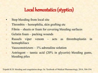 Drugs used as styptics, detail pharmacology of the drugs used as ...