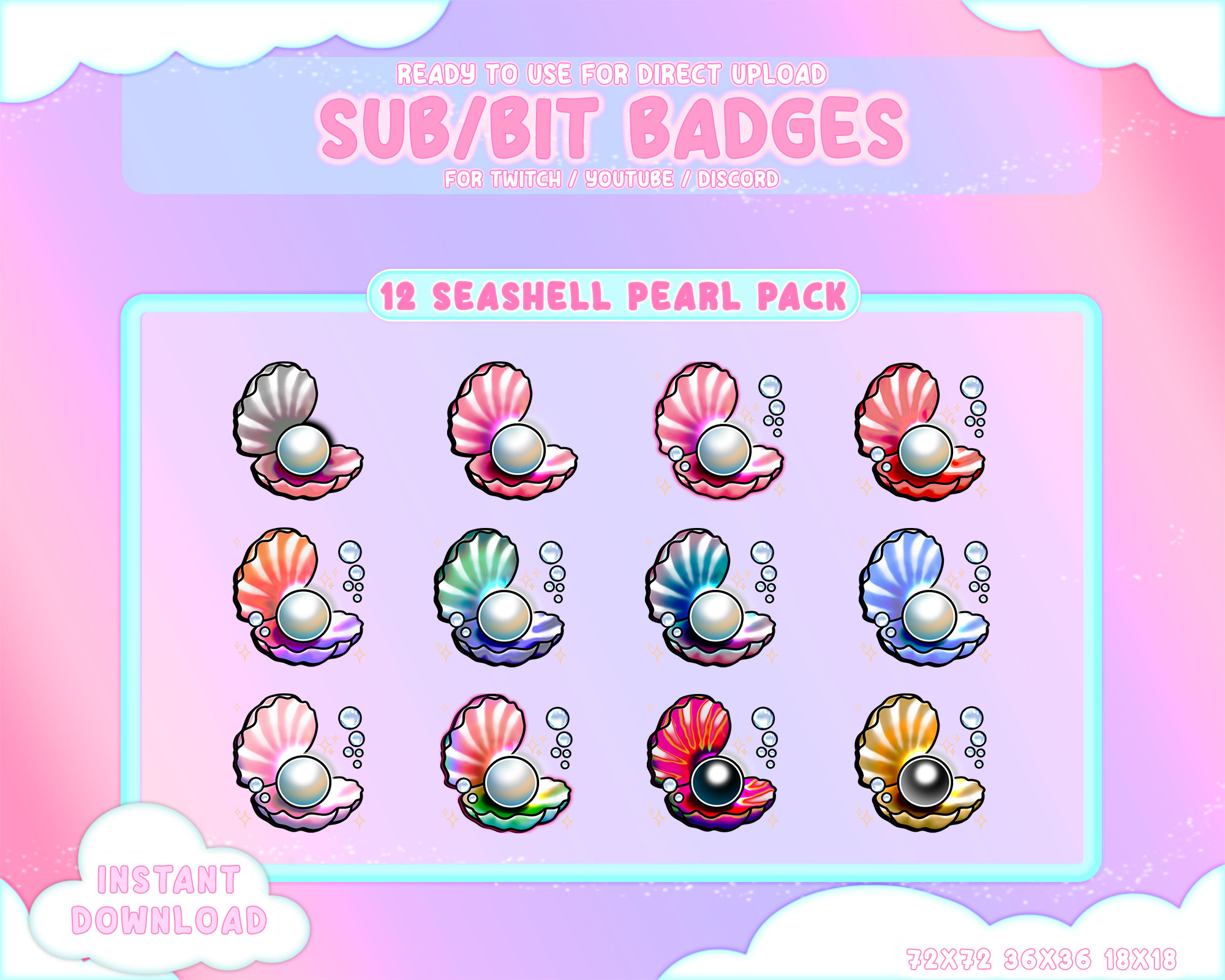 12 Twitch Sub Bit Badges Colored Seashell Pearl Pack / Sub Badges / Bit ...