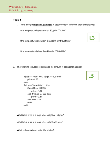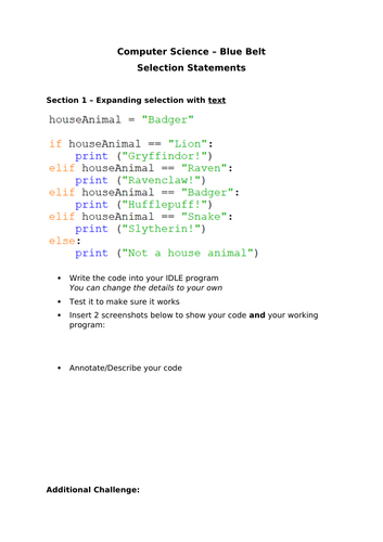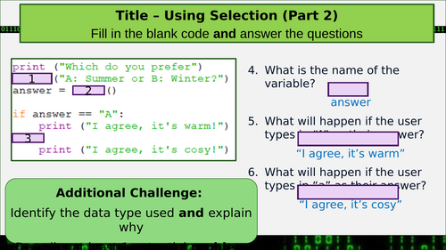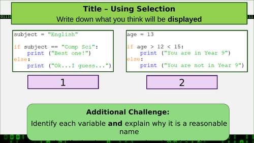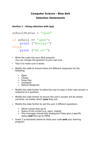Selection practical for GCSE Computer Science using Python | Teaching ...