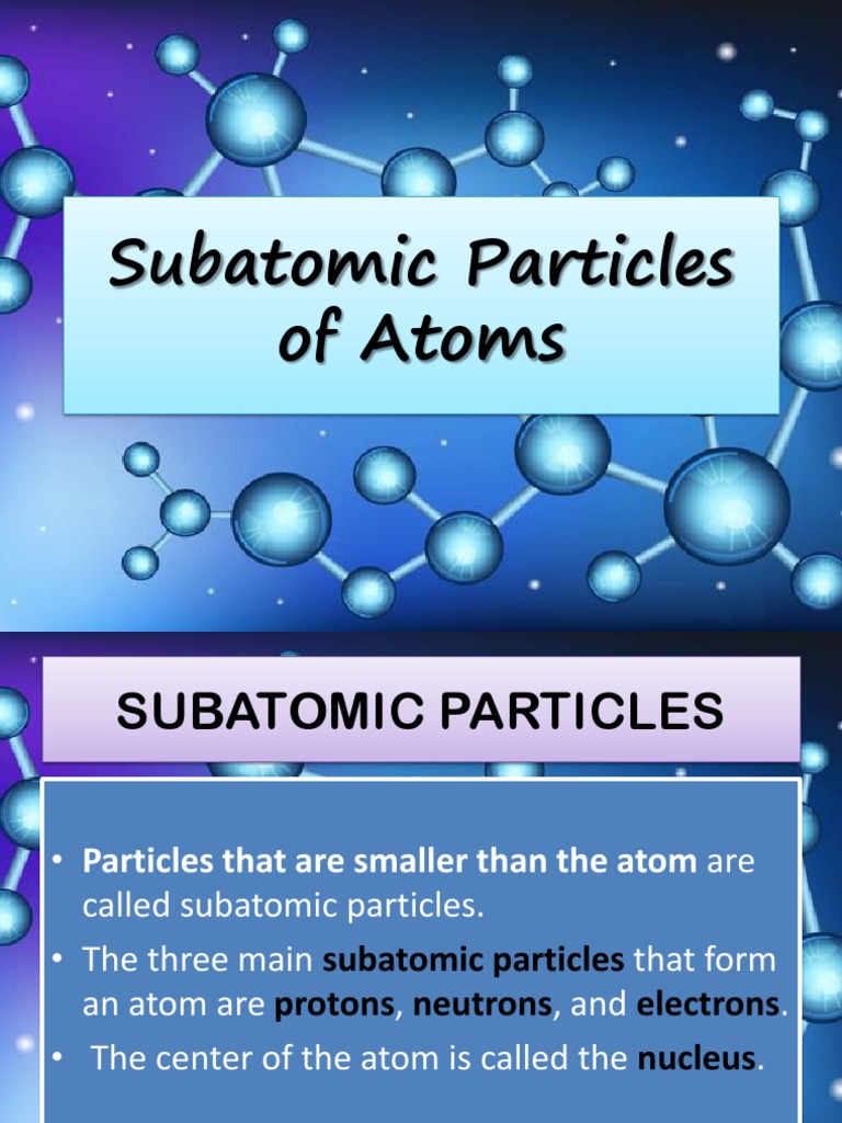 Subatomic Particles of Atoms | PDF | Atoms | Atomic Nucleus