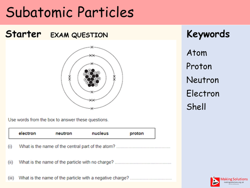 Chemistry Lesson 4 Subatomic Particles | Teaching Resources