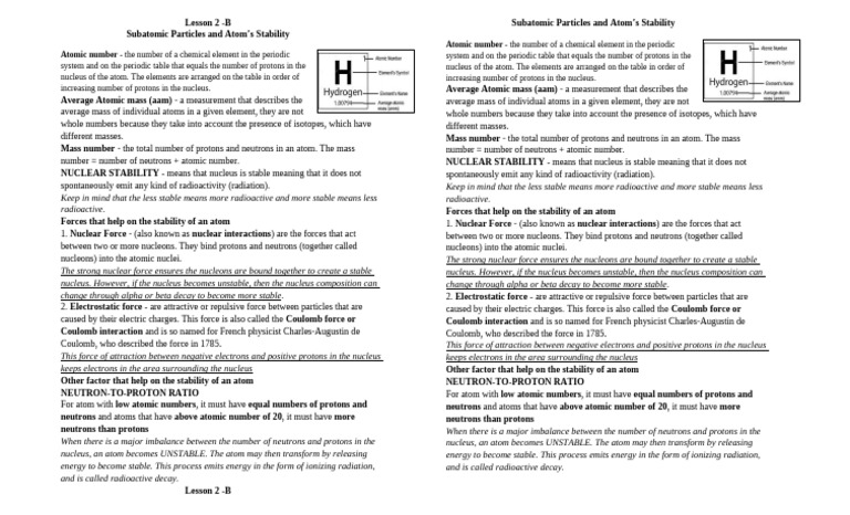 Lesson 2B Subatomic Particles and Atoms Stability | PDF | Atomic ...