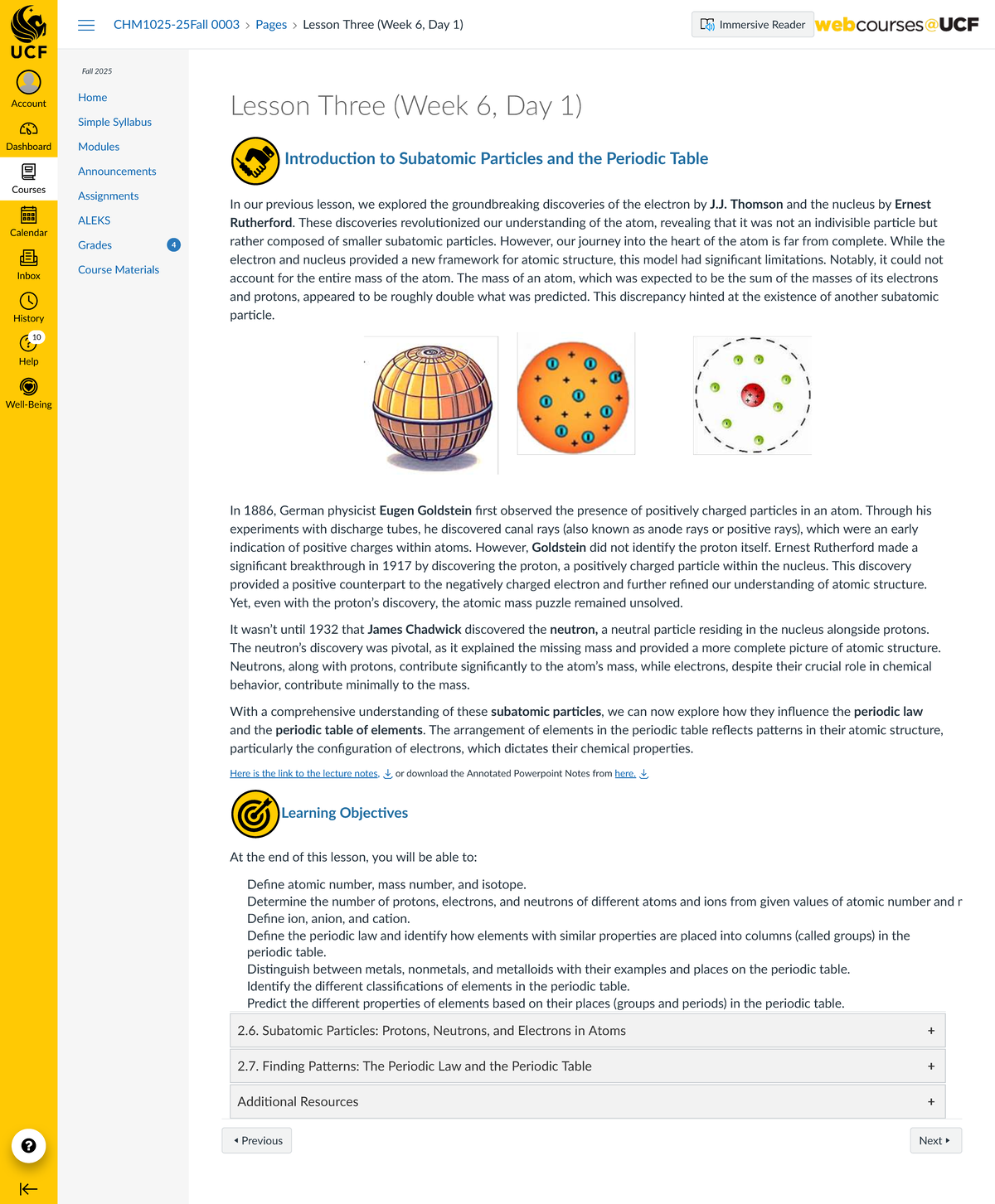 CHM1025-25 Fall 2025: Lesson 3 - Subatomic Particles & Periodic Table ...