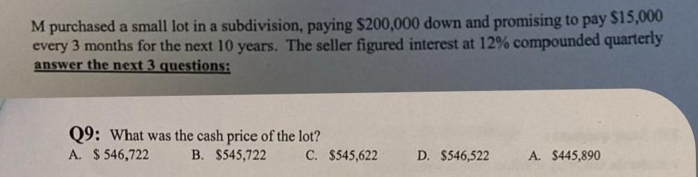 Solved M purchased a small lot in a subdivision, paying | Chegg.com