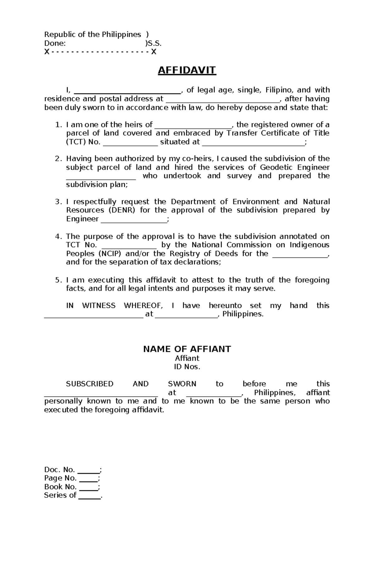 Affidavit for Subdivision Approval in the Philippines - Studocu