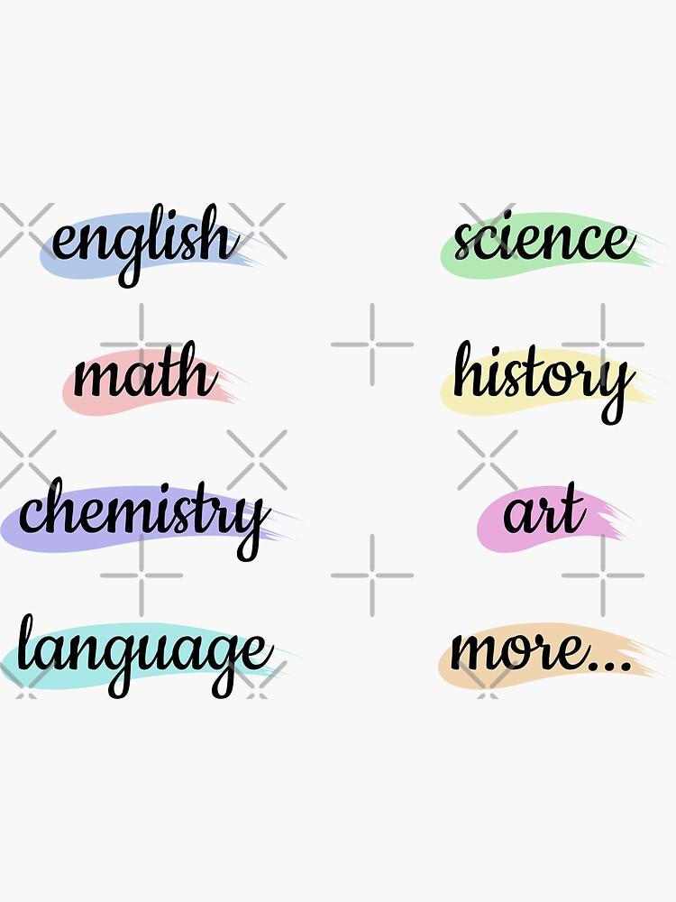 "School Subjects Labels Cursive Script Collection Pack Bundle" Sticker ...
