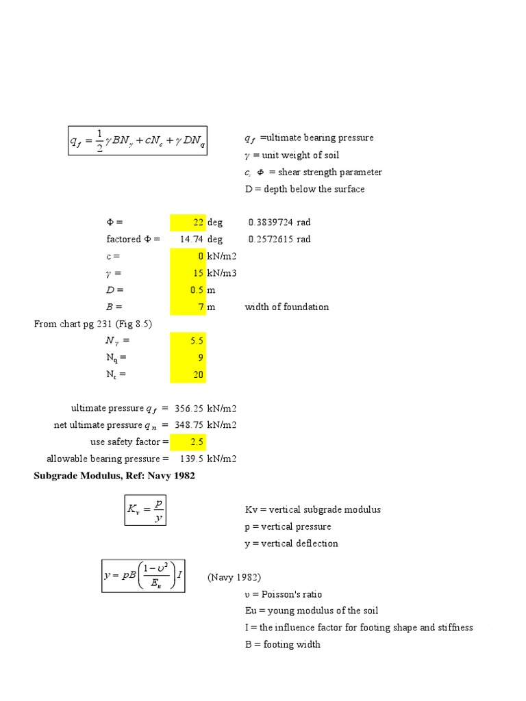 Math cad soil bearing capacity, subgrade modulus, and soil stiffness | PDF