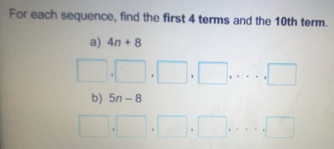 Solved: For each sequence, find the first 4 terms and the 10th term. a ...