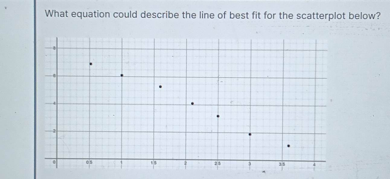 Solved: What equation could describe the line of best fit for the ...