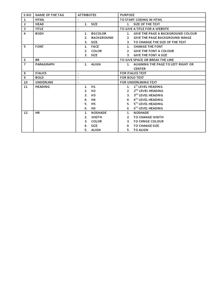 Computer Science Tags and Attributes | PDF