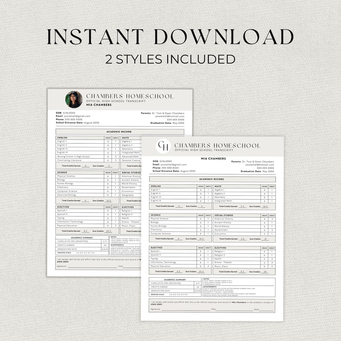 Homeschool Transcript (high School) - 2 Variations - by Year or by ...