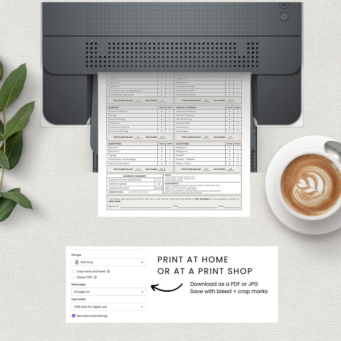 Printable Transcript Template Homeschool Transcript Official - Etsy