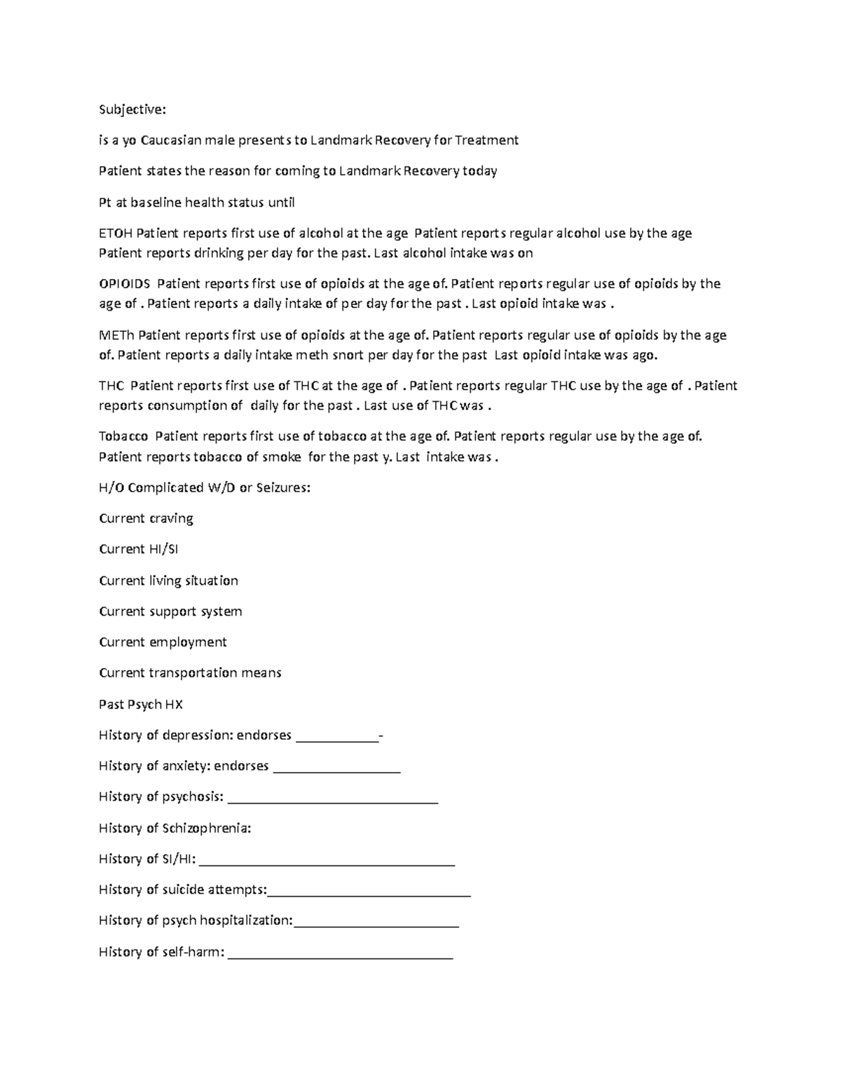 Work template - SOAP note example Mental Health - Subjective: is a yo ...