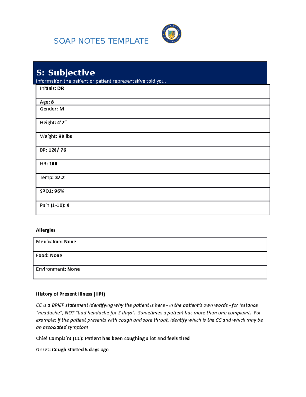 SOAP Note Template - SOAP note example - SOAP Note Subjective (25 ...