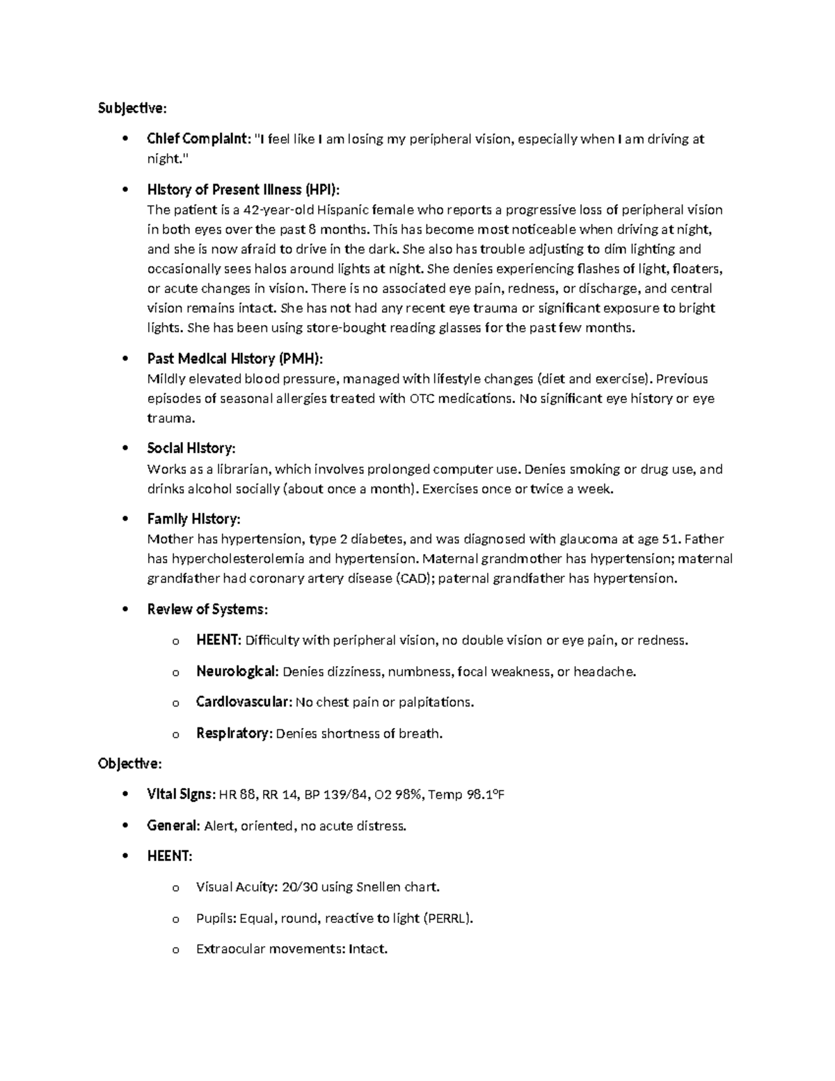 Soapnote week 8 - subjective, objective, assessment and plan on a woman ...