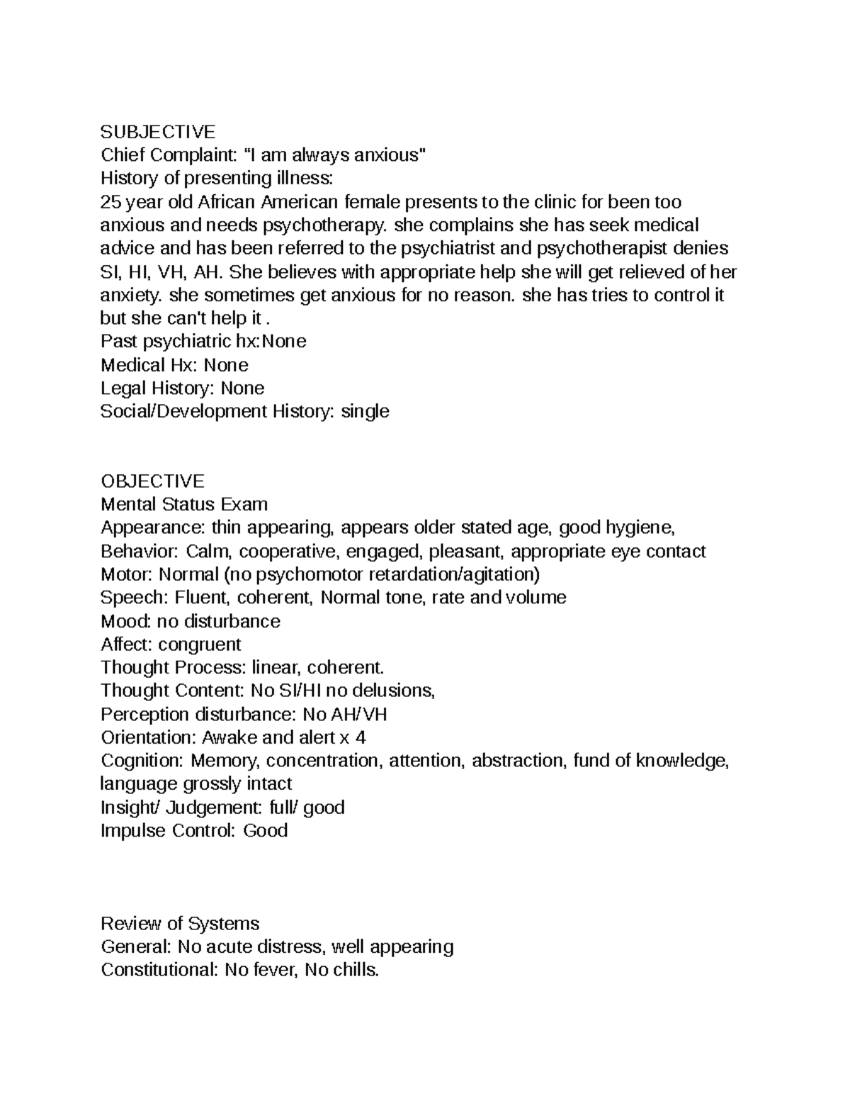 SOAP Notes 1 - SUBJECTIVE Chief Complaint: “I am always anxious ...