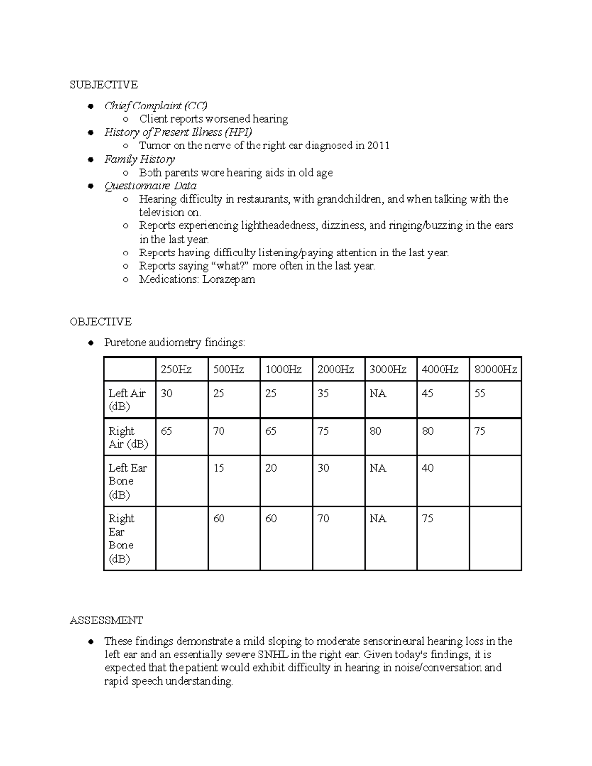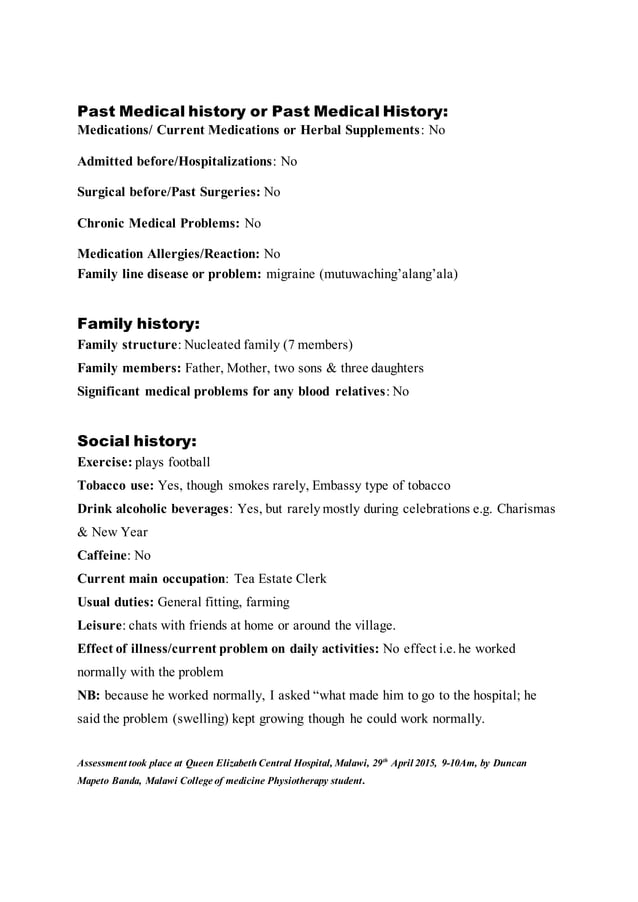 Patient Subjective assessment report | DOCX