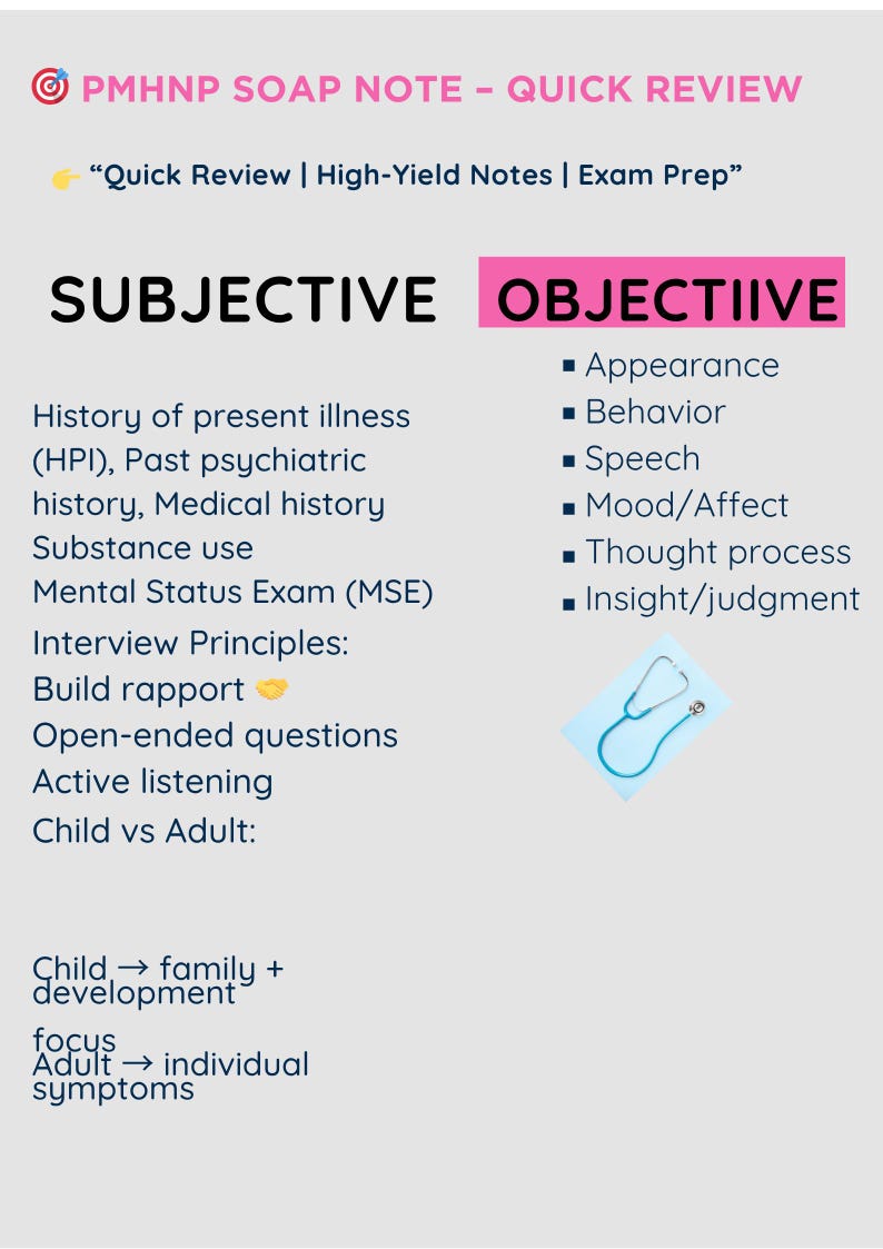 PMHNP SOAP Note Template | Psychiatric Nursing Notes | Mental Health ...