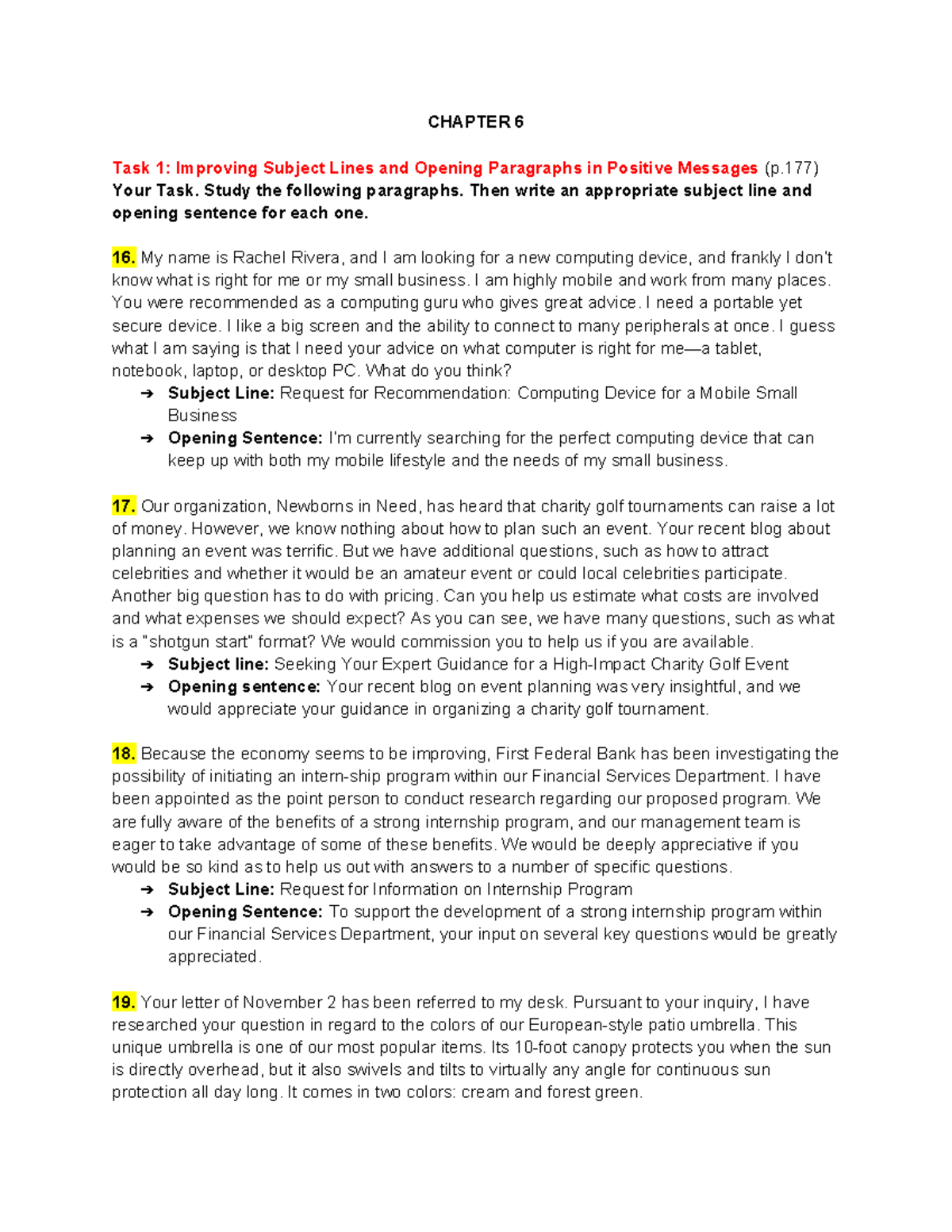 BC HW 1 - Chapter 6: Enhancing Subject Lines & Openings in Positive ...