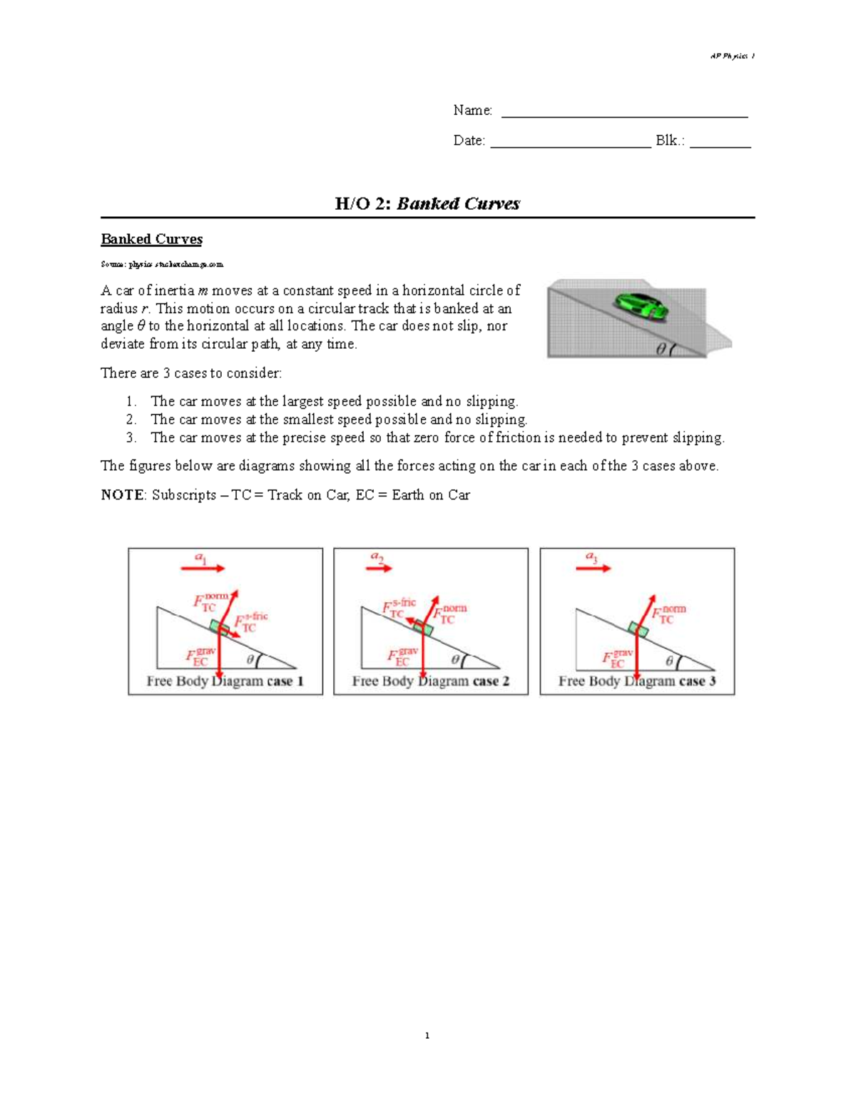 AP Physics 1: Banked Curves Analysis and Examples - Studocu