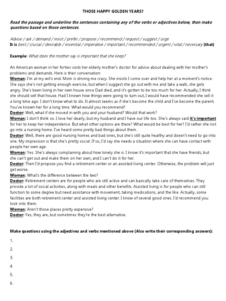 The Subjunctive Mood Worksheet | photocopiables