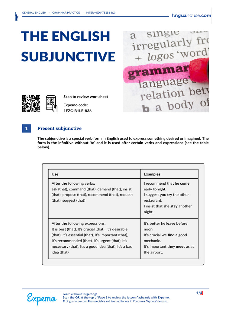 Subjunctive Mood Made Simple – Grammar Worksheets & Practice Activities