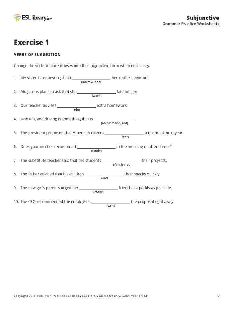 Subjunctive - Grammar Practice Worksheets - ESL Library | PDF | Linguistics