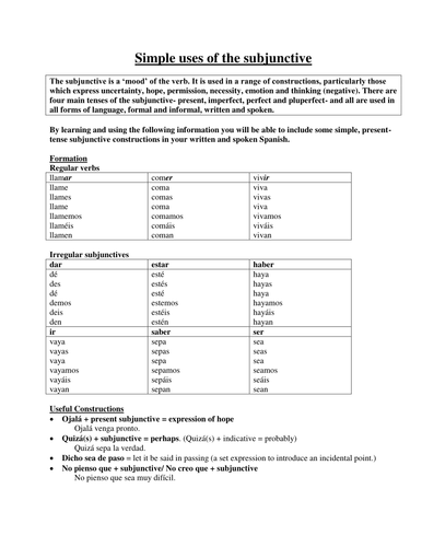 Simple uses of the subjunctive | Teaching Resources