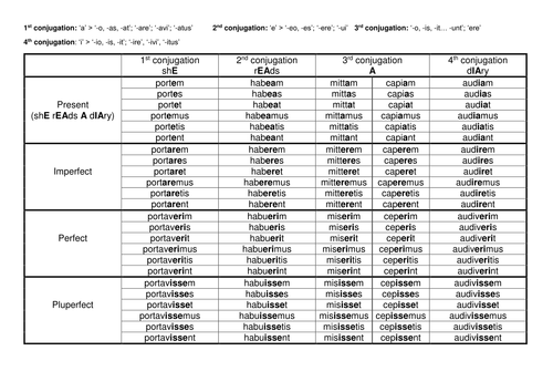 Latin Subjunctive Conjugation Chart