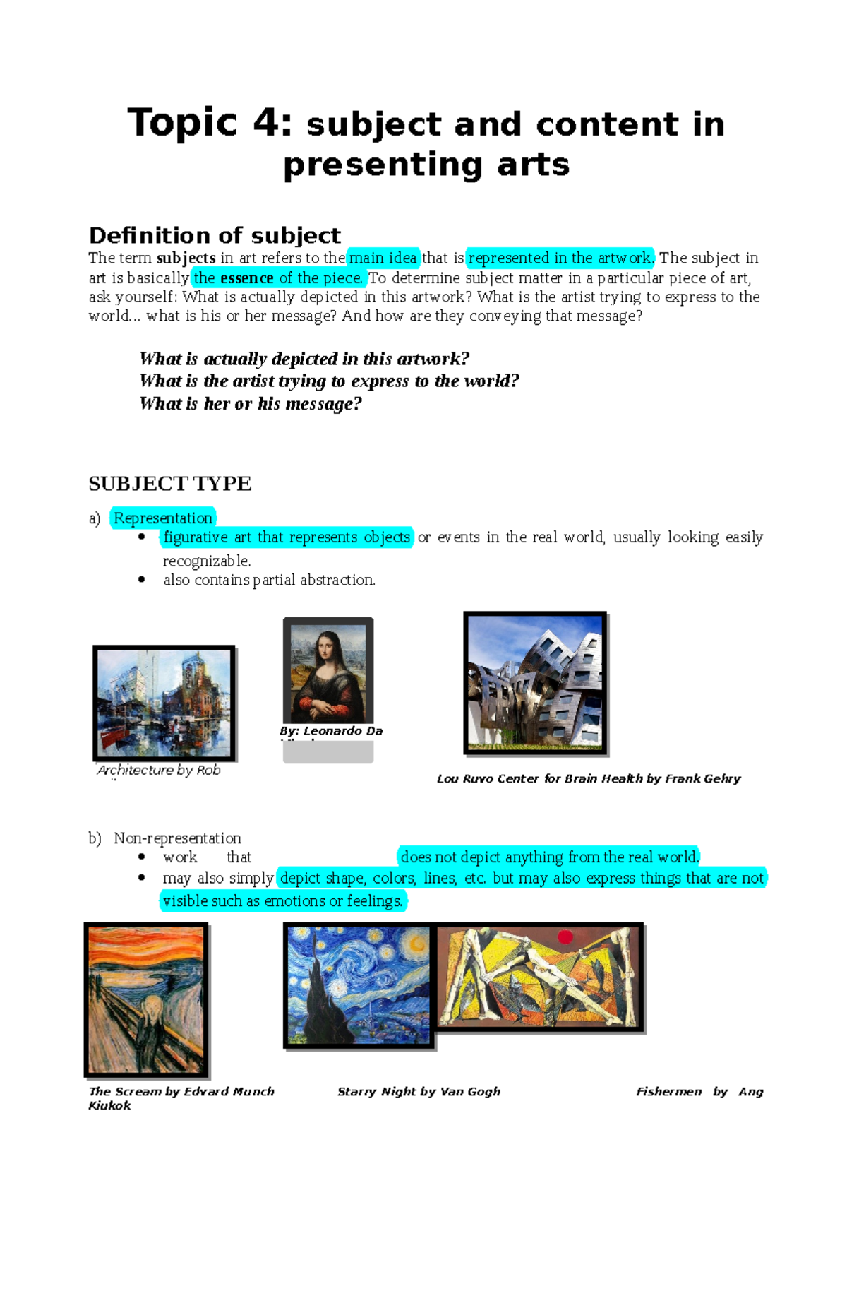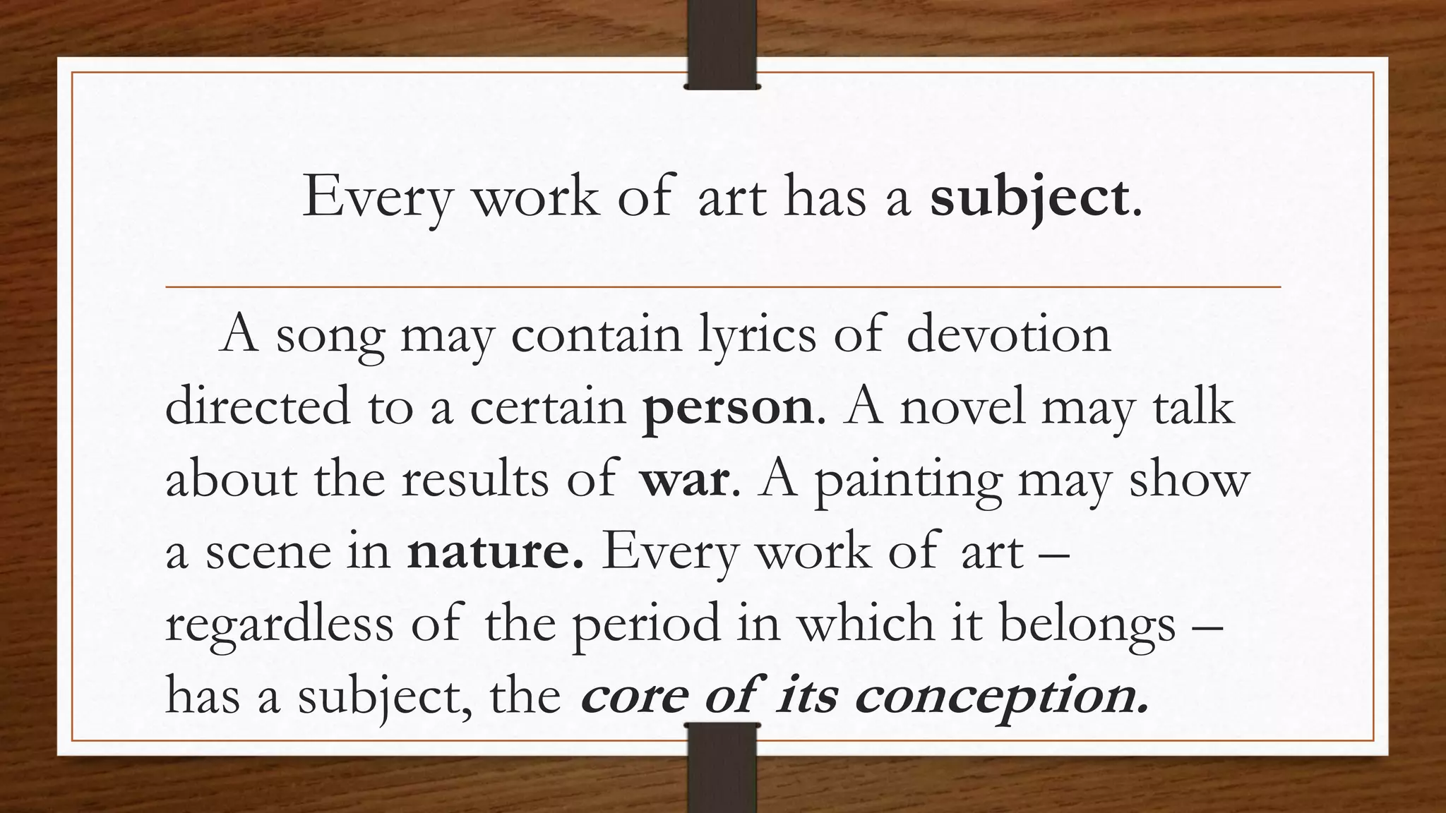 ART APPRECIATION - Topic 4: subject and content in presenting arts ...