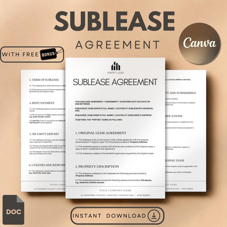 Editable Sublease Agreement Template | Digital Download for Tenants ...