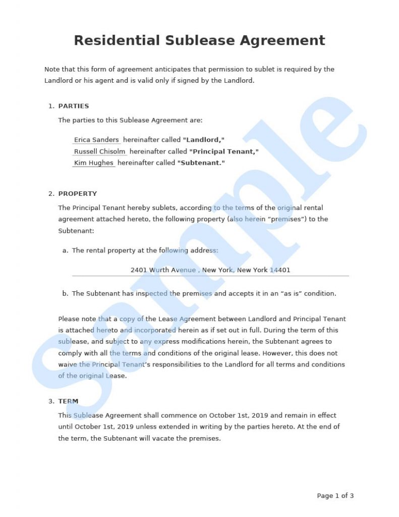 Tenant Sublease Agreement Template - How To Fill Tenant Sublease ...