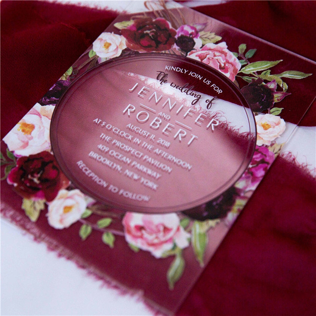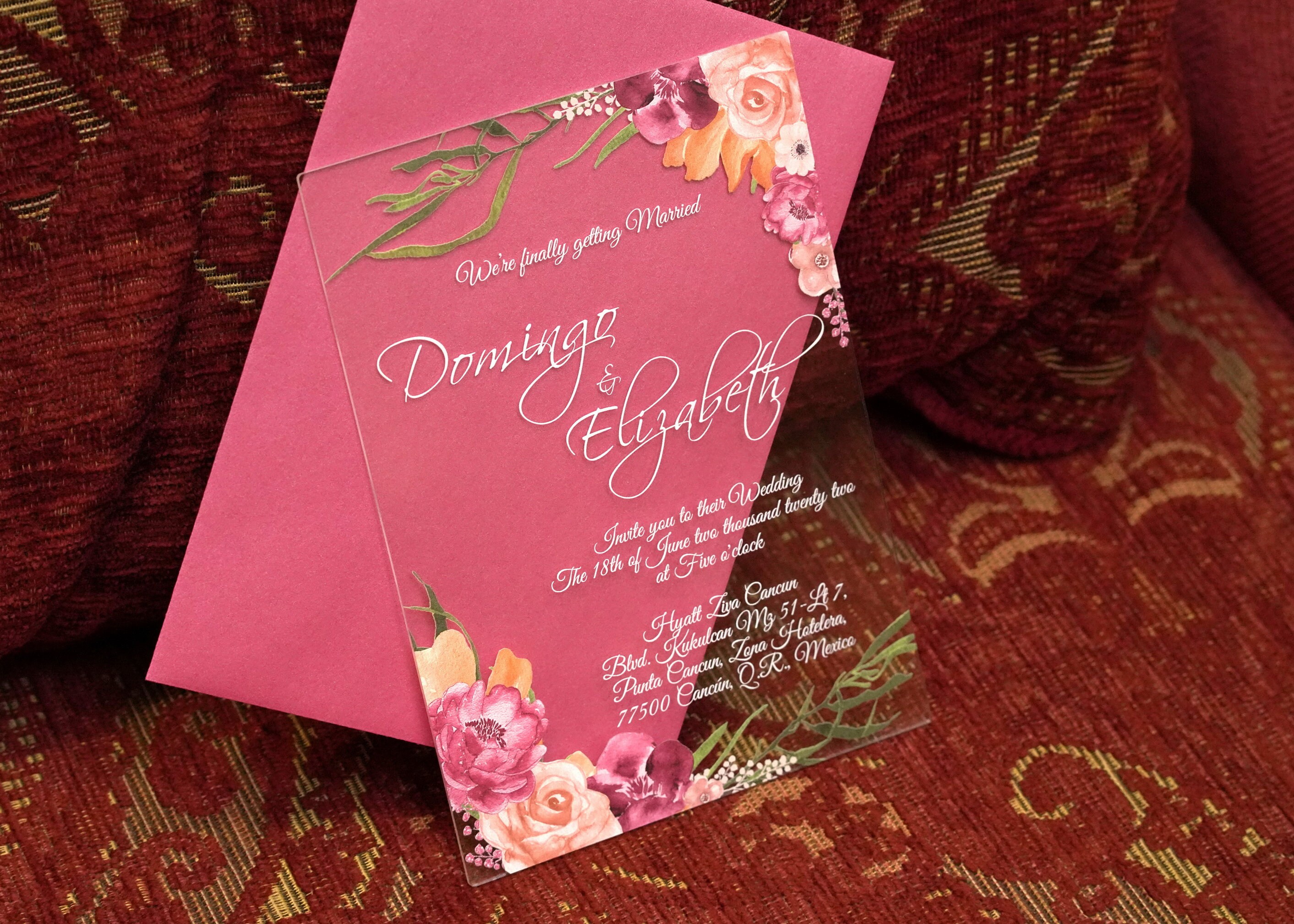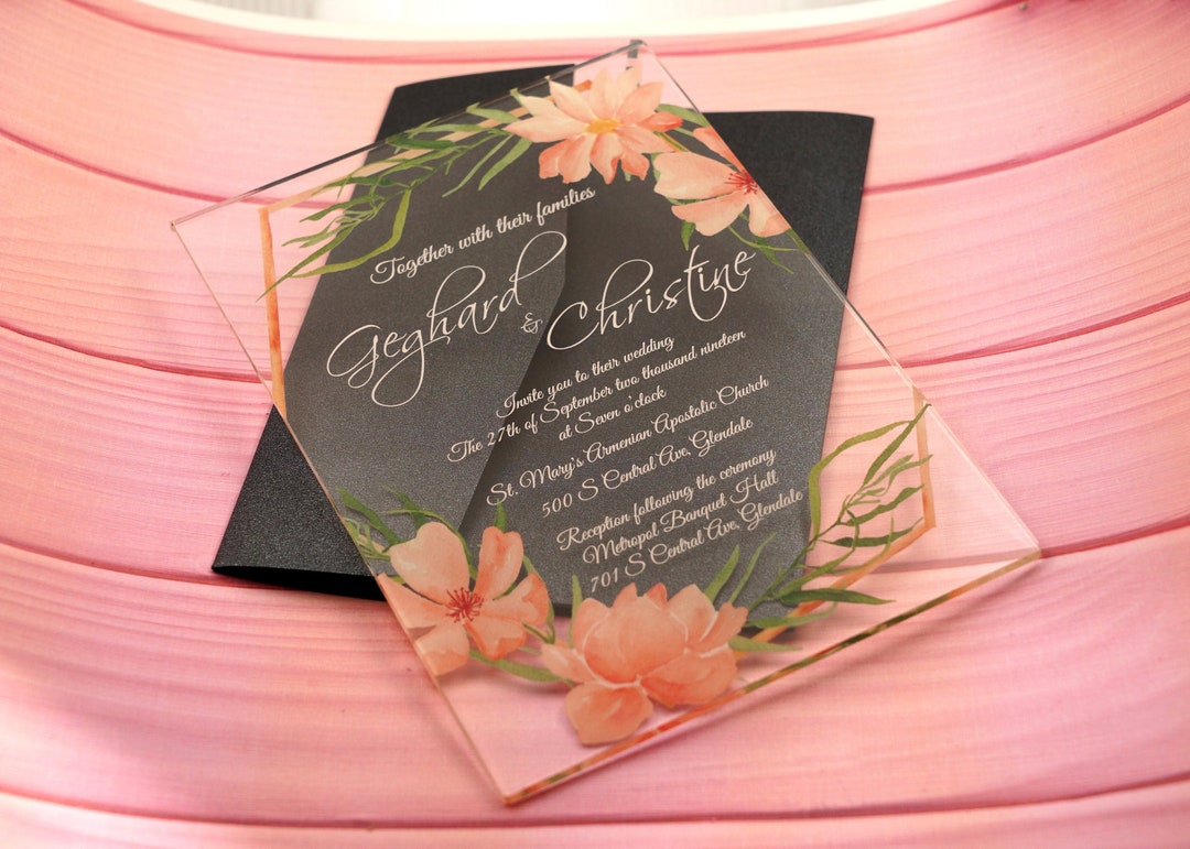 Acrylic Wedding Invitation: Personalized Clear Floral Design - Etsy