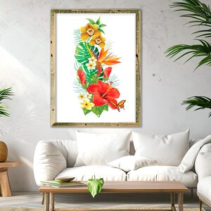 Tropical Flowers Clipart – Exotic Floral Arrangements and Leaves – Hand ...