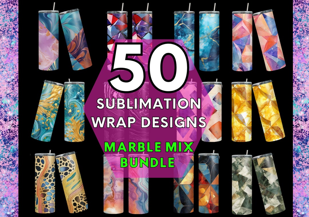 50 Sublimation Wraps Bundle | Marble Designs Mix | 20oz Straight ...