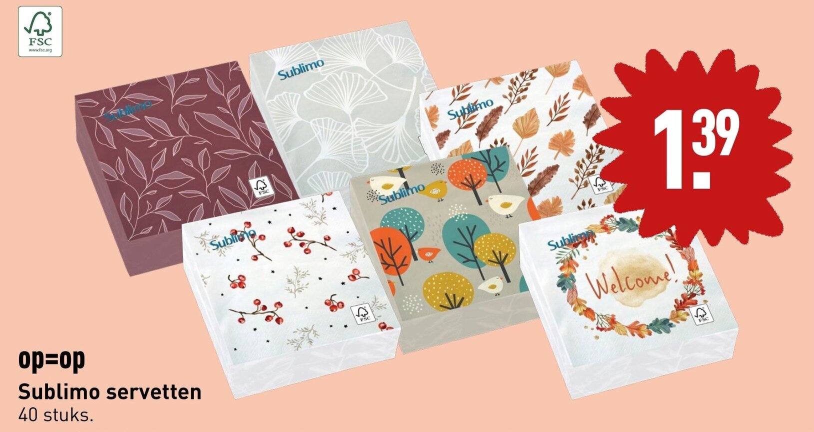 Sublimo servetten 40 stuks aanbieding bij ALDI