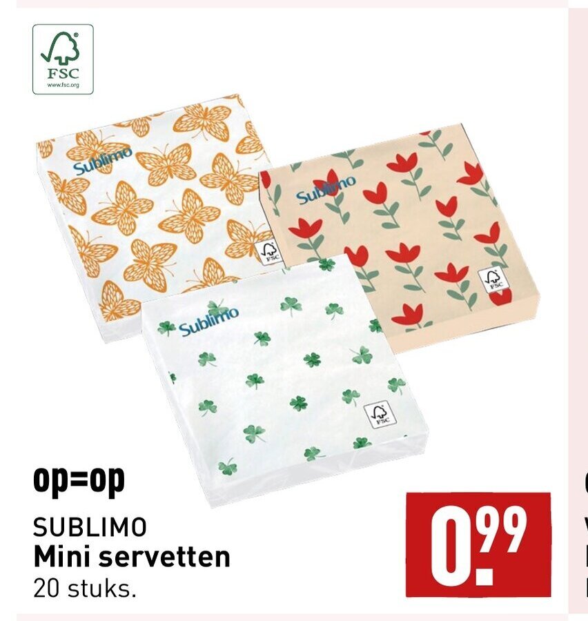 Sublimo mini servetten 20 stuks aanbieding bij ALDI