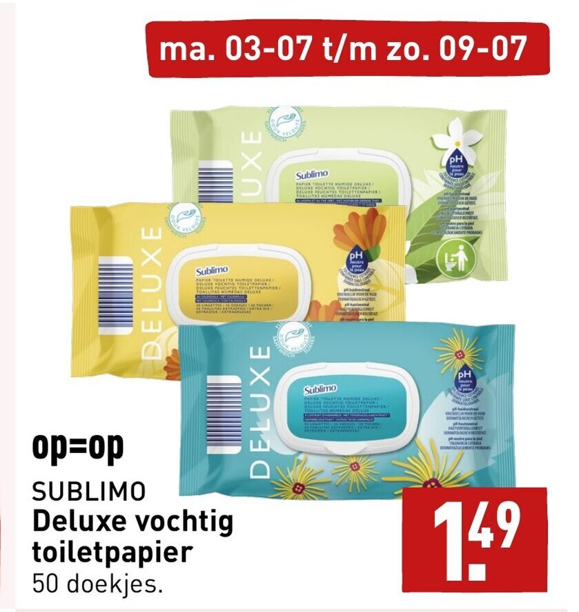 SUBLIMO Deluxe vochtig toiletpapier aanbieding bij ALDI