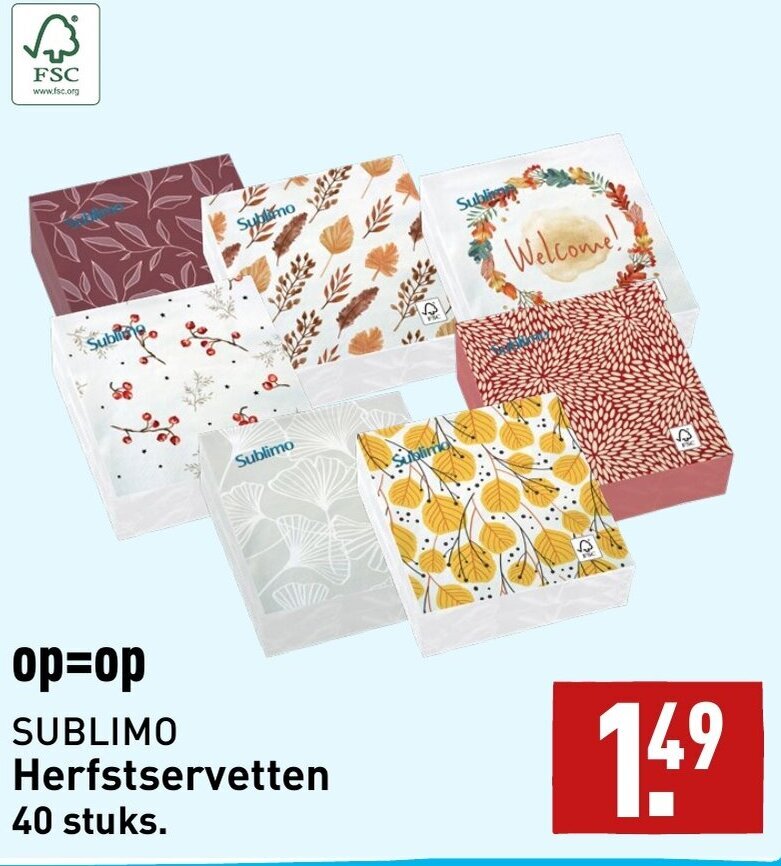 SUBLIMO Herfstservetten 40 stuks. aanbieding bij ALDI