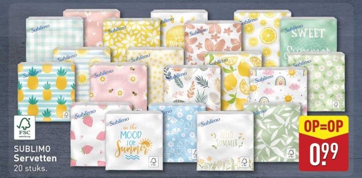 Sublimo Servetten 20 Stuks aanbieding bij ALDI