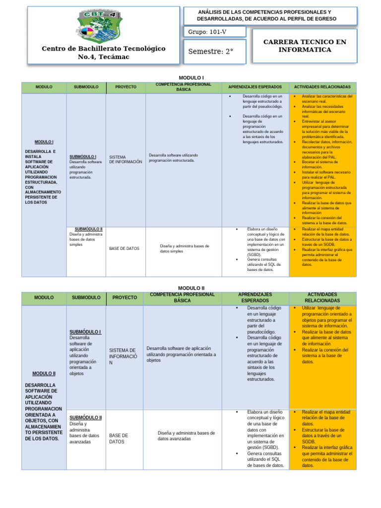 Tabla Modulos y Submodulos - Tecnico en Informatica | PDF | Aplicación ...
