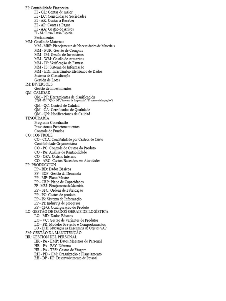 Modulos y Submodulos de Sap PDF | PDF | Calidad (comercial) | Gestión ...