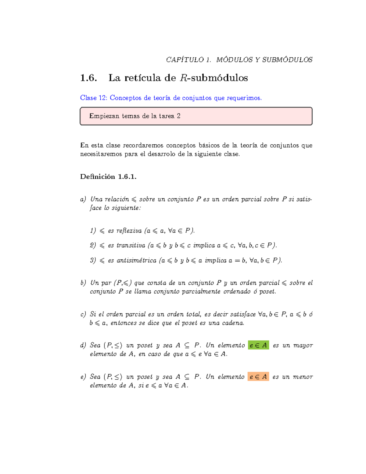 Clase 12: La Retícula de R-Submódulos en Teoría de Conjuntos - Studocu