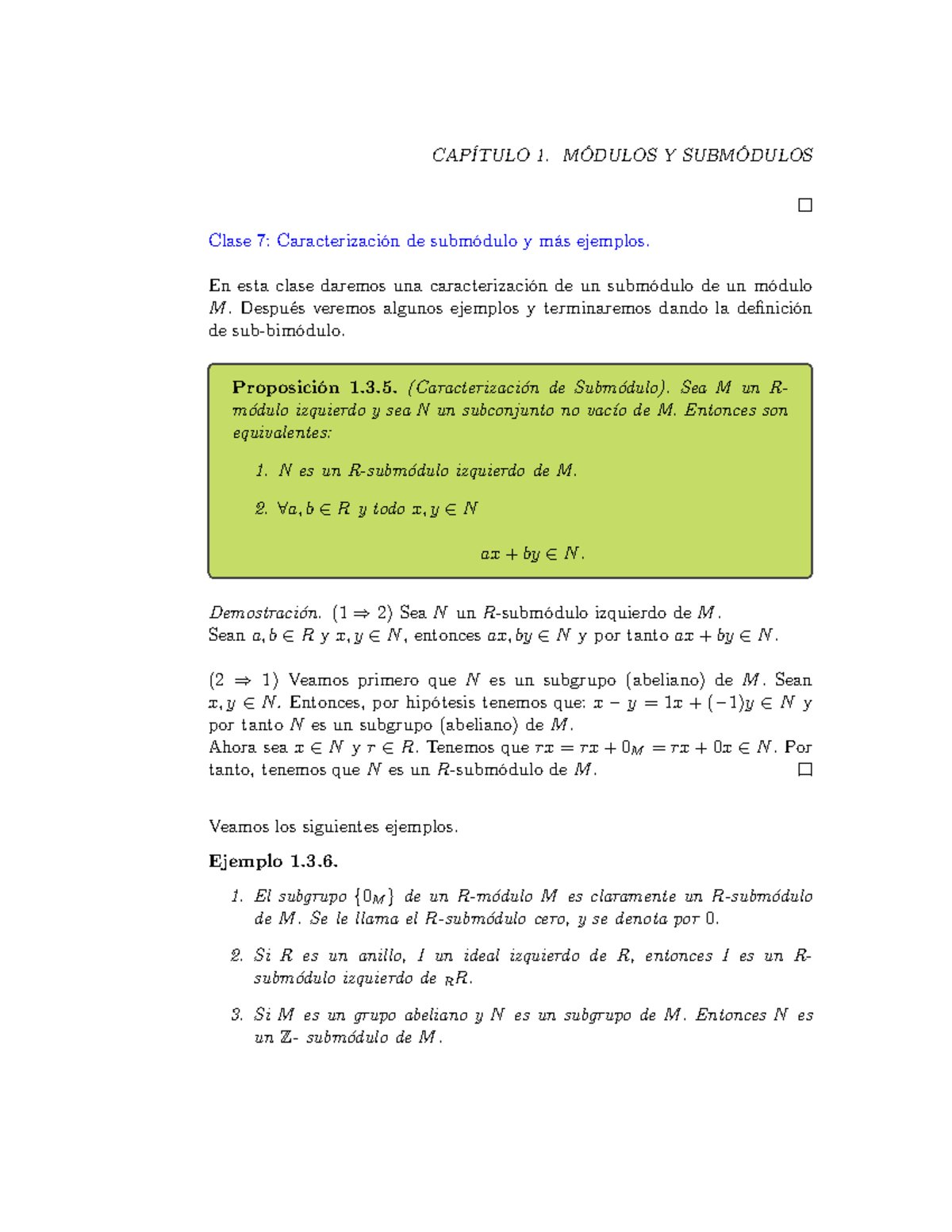 Clase C 7M Caracterización de Submódulos y Ejemplos - CAPÍTULO 1 ...