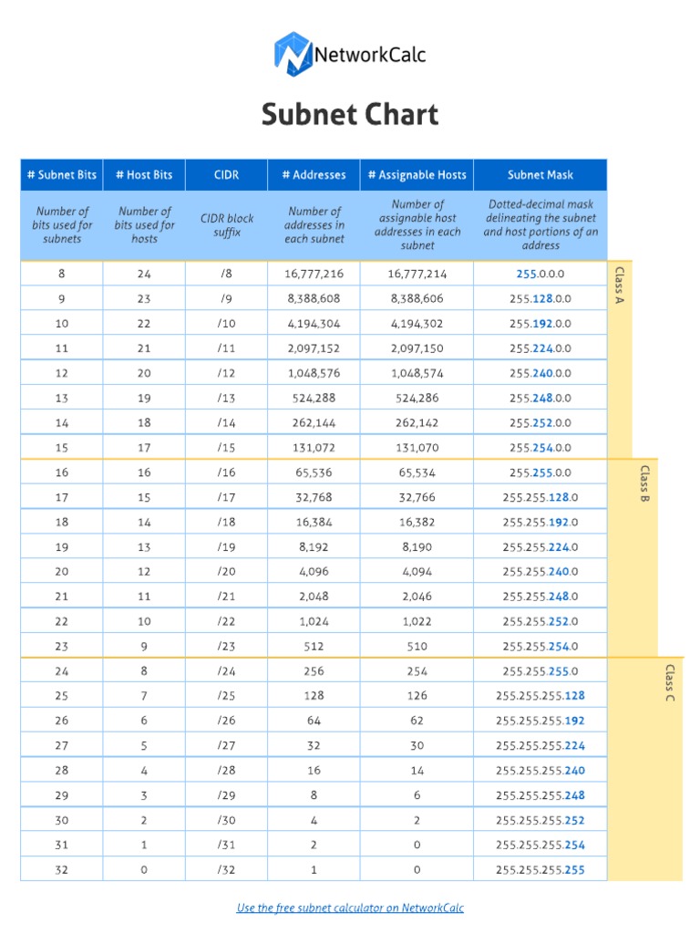 Subnet Cheat Sheet Download Printable PDF | Templateroller