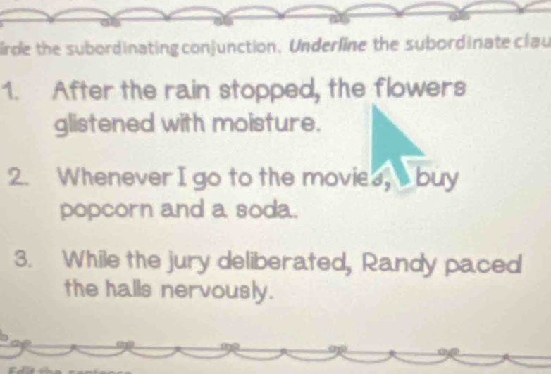 Underline the subordinating conjunctions in the sentences below. Use ...