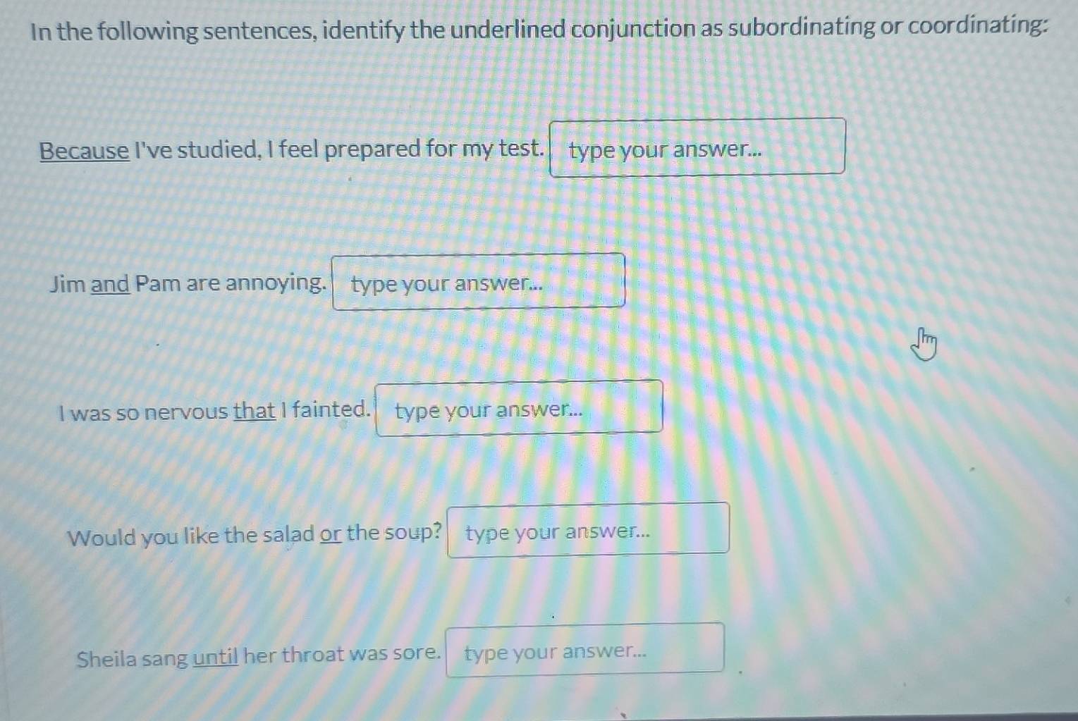 Solved: In the following sentences, identify the underlined conjunction ...